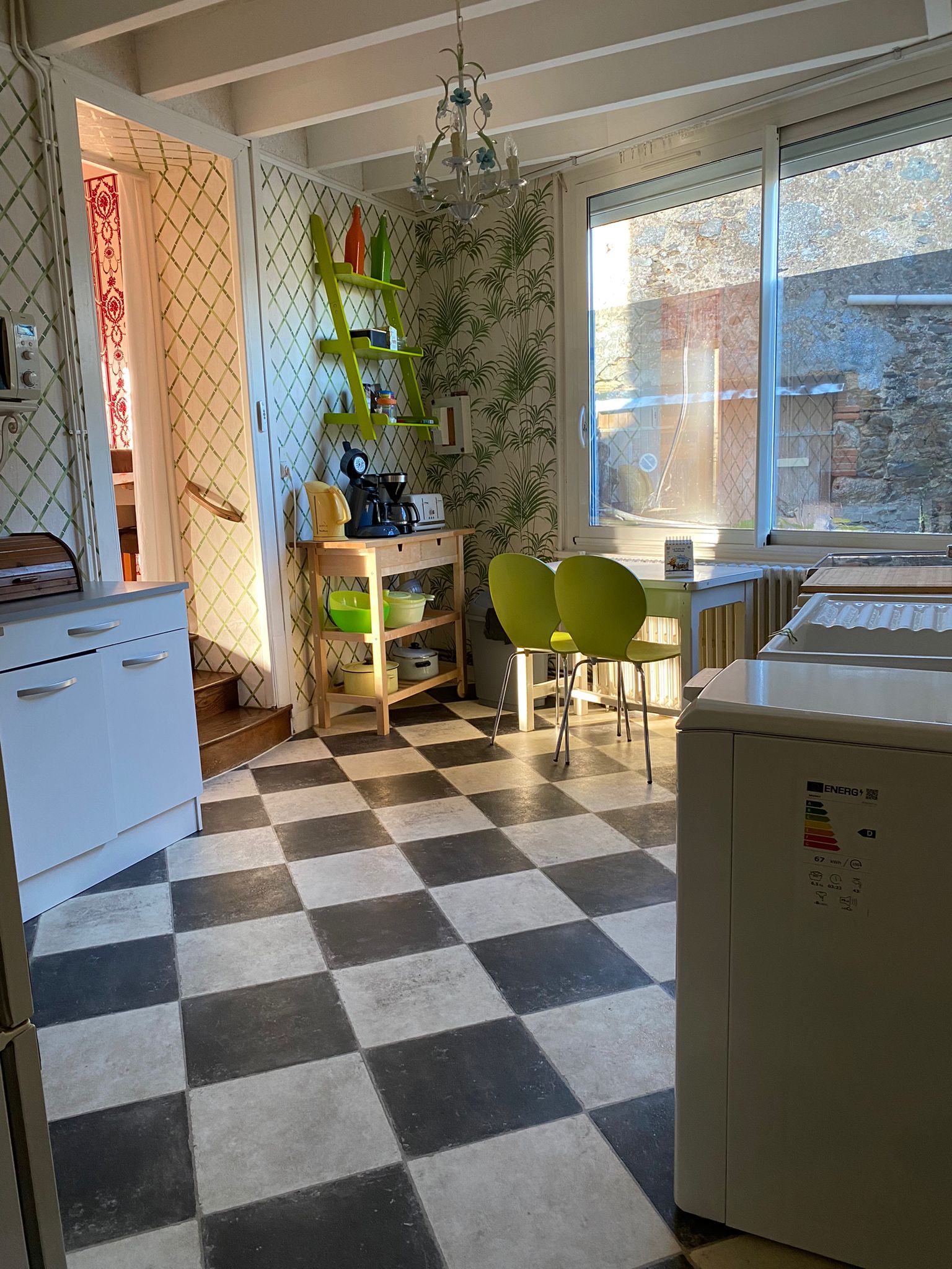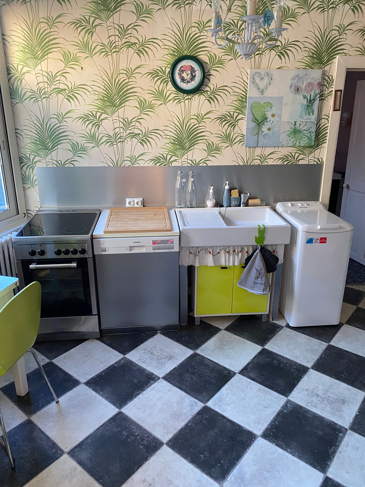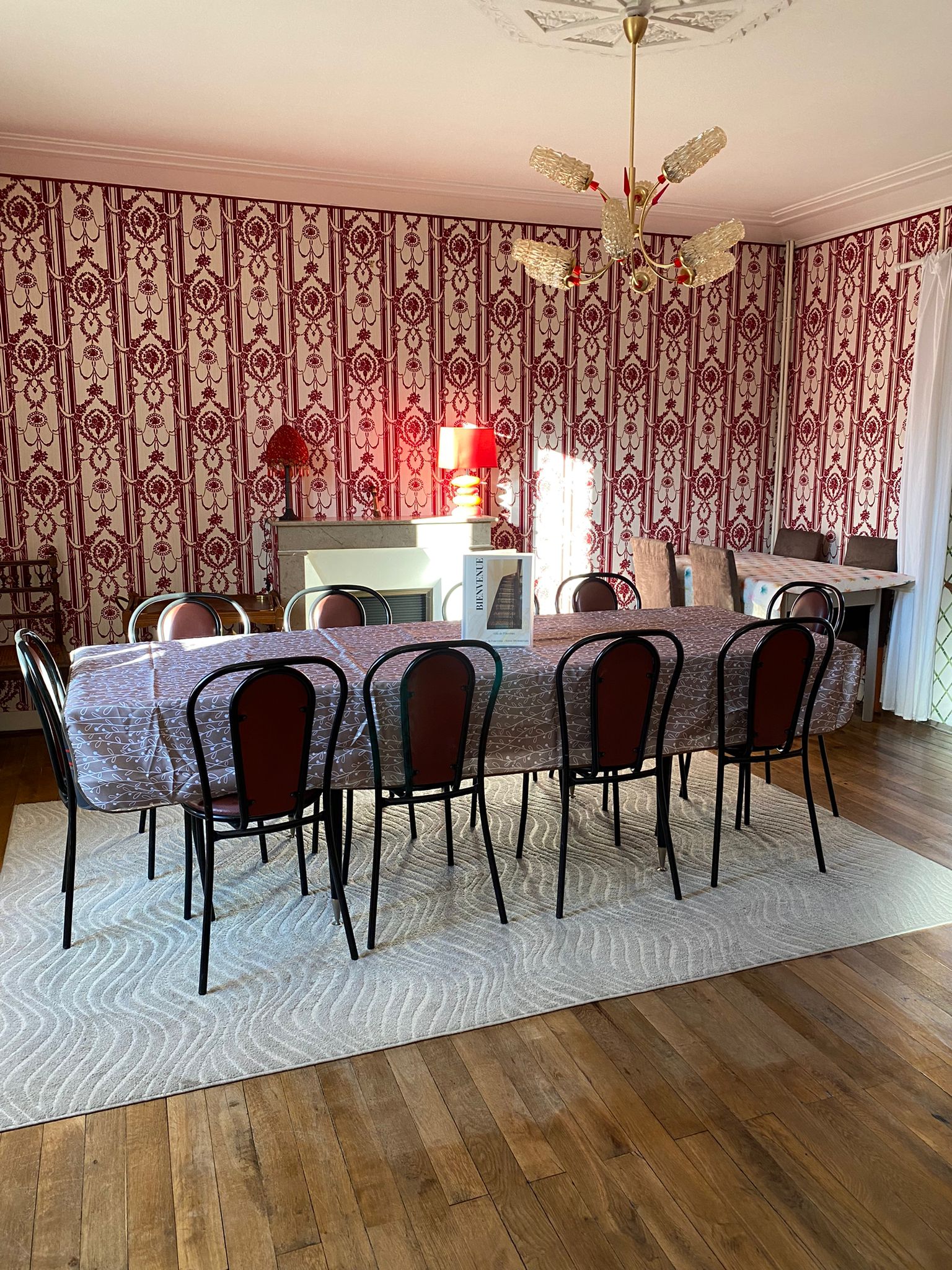 d’une entrée donnant sur un salon et sur une salle à manger, à la suite de celle-ci une cuisine équipée et une salle de bain + WC