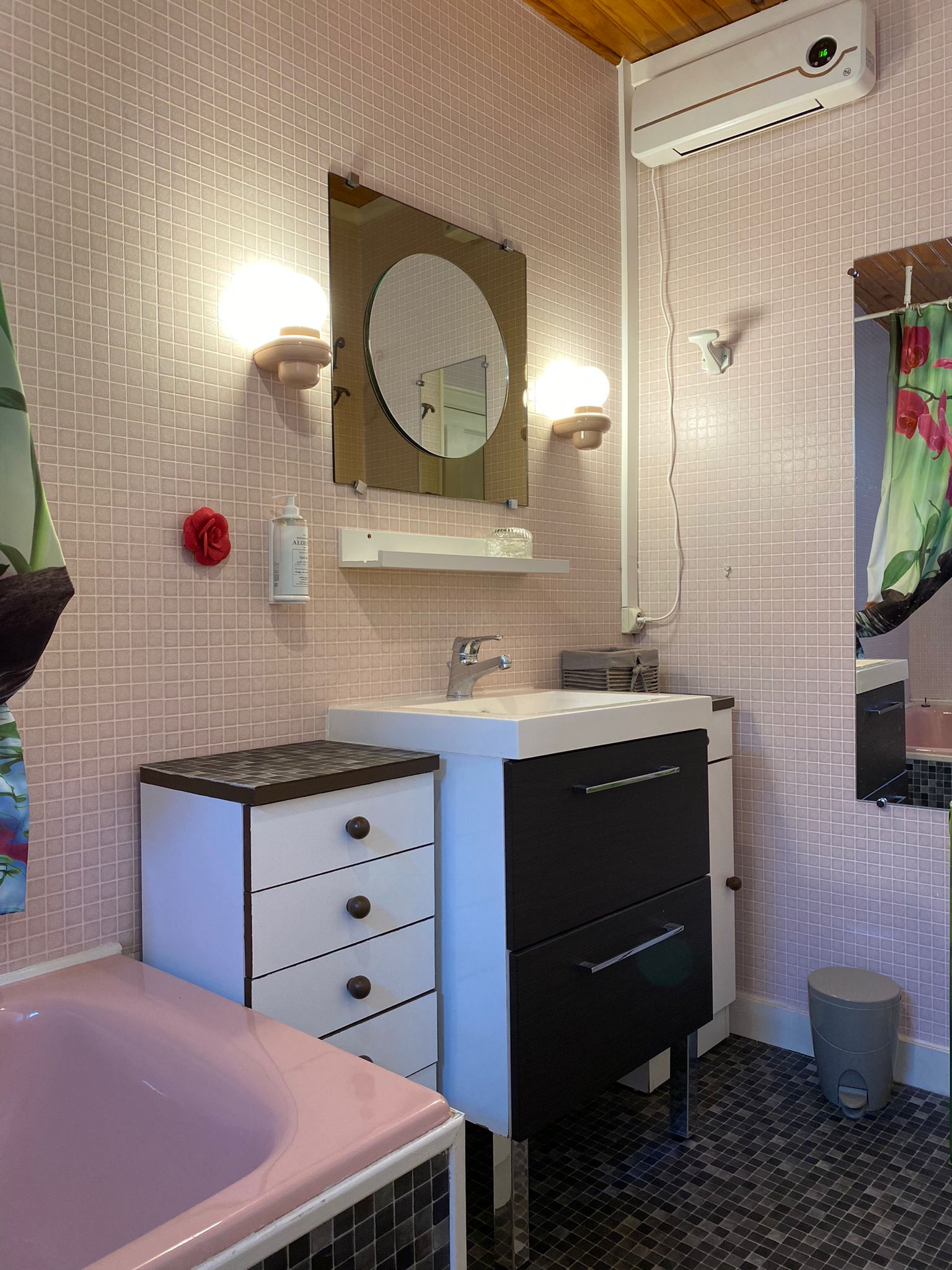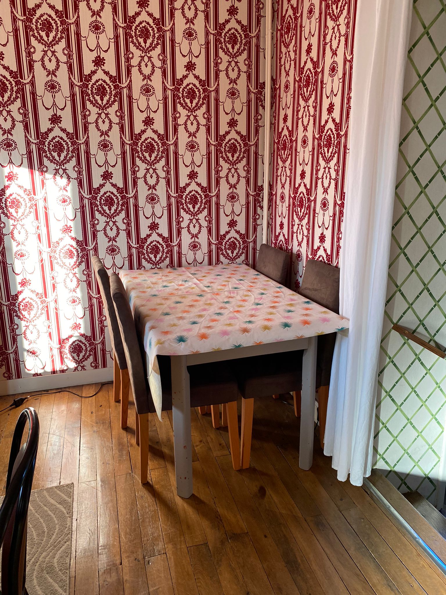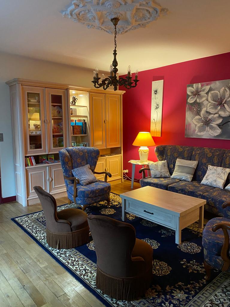d’une entrée donnant sur un salon et sur une salle à manger, à la suite de celle-ci une cuisine équipée et une salle de bain + WC