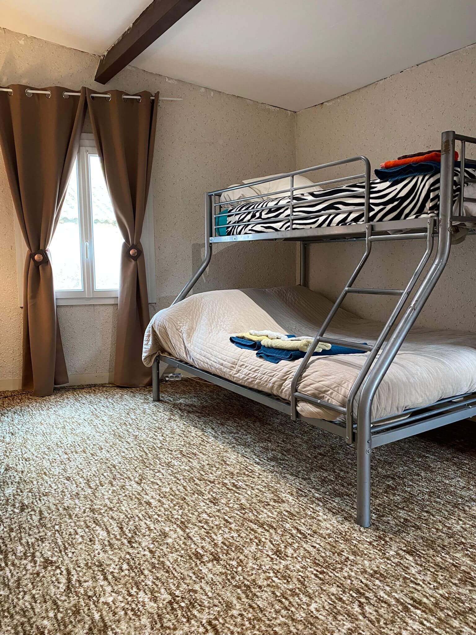 1 chambre avec 1 lit 2 places (140 x 190) + 1 lit 1 place (90 x 190)