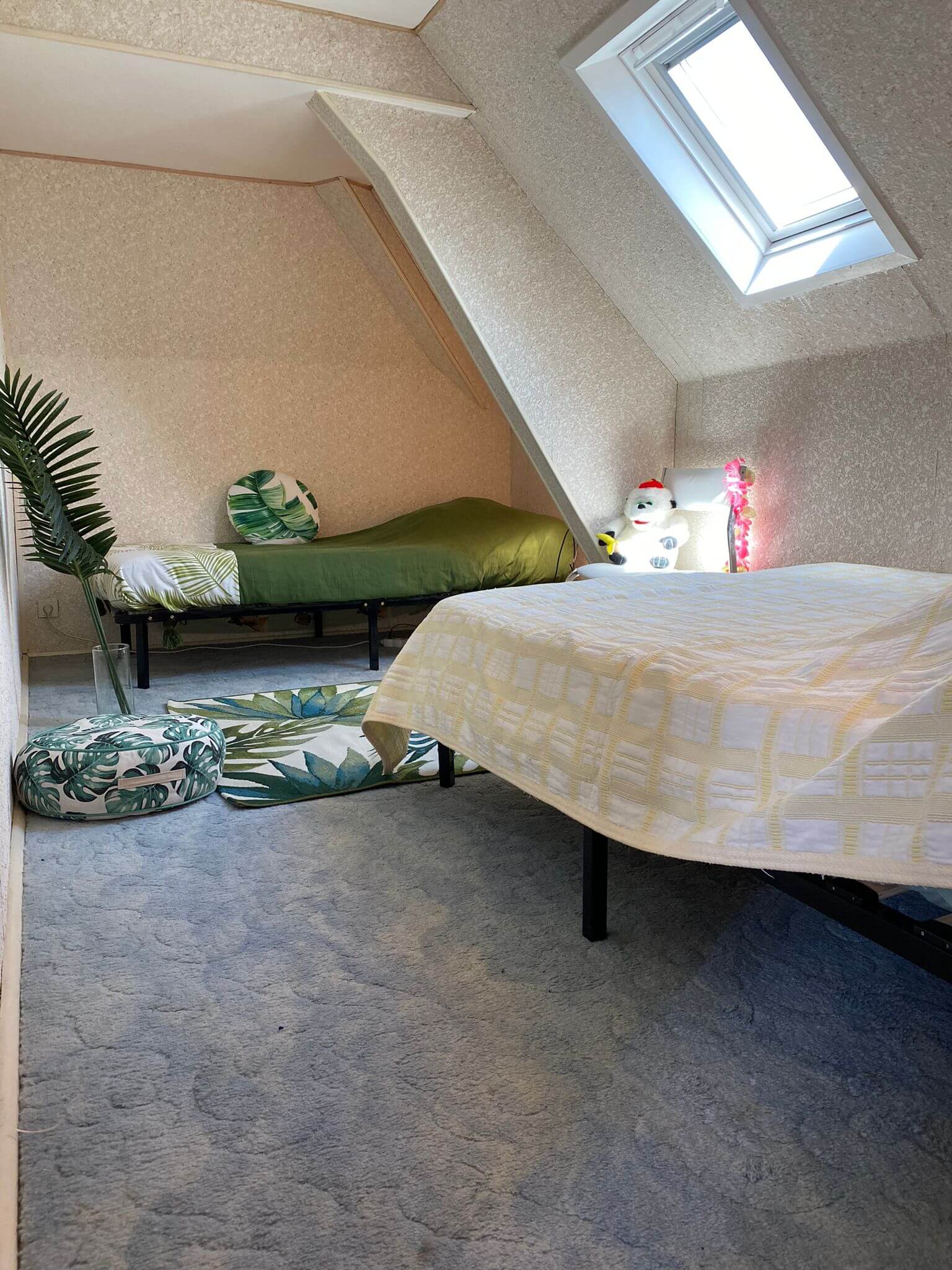 1 chambre avec 2 lits 2 places (140 x 190) + 1 lit 1 place (90 x 190)